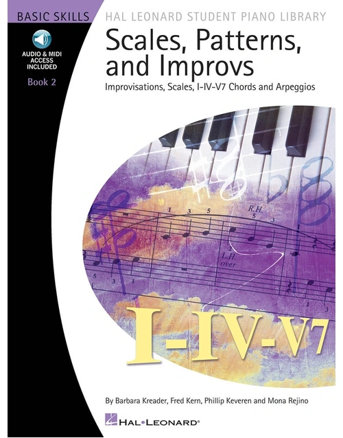 Scales, Patterns and Improvs provides students with a valuable resource for building technique through one octave scales, I-IV-V7 chords and arpeggios in all major and minor keys. Students apply these basic skills through improv exercises and reading pieces in every key, and by learning to transpose, create an accompaniment and play from a lead line. The accompanying audio features MIDI orchestrations for all improvs and exercises. Plus, the files include playback tools to assist with slowing down the tempo for practicing.