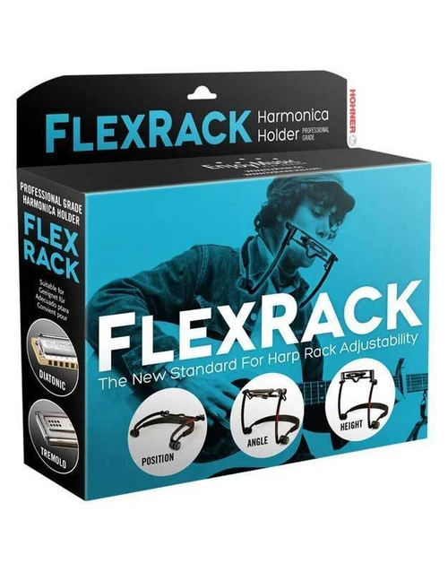 Playing hands-free harmonica in conjunction with other instruments such as guitar or keyboards has never been so easy! The FlexRack is the only product of its kind which can be adjusted so quickly and easily to really suit the individual requirements of the player.