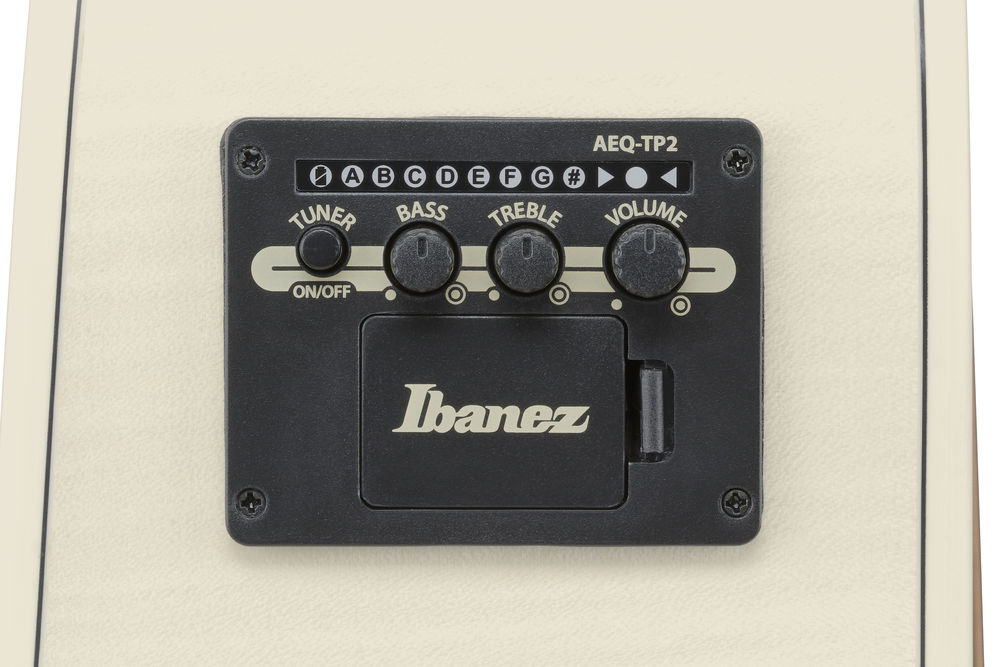The Ibanez AEQ-TP2 preamp provides the extra punch of on-board EQ along with a convenient and easy-to-read digital tuner and 2-band EQ, located on the instrument’s upper bout.