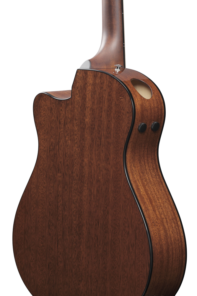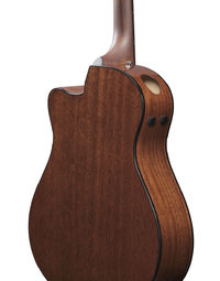Introducing the Ibanez AAM300CE NT Advanced Acoustic Guitar, part of the Advanced Acoustic Series. The Advanced Acoustic series is meticulously crafted to redefine the acoustic experience, offering a richer and brighter tone with an unprecedented dynamic range. Designed for superior comfort, the guitar features a Low Oval Grip Thermo Aged African Mahogany neck with Rounded Fretboard Edge, ensuring effortless chord strumming and impeccable playability.