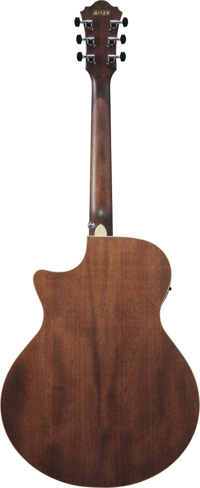 The Laurel Scalloped bridge enhances vibration efficiency for better resonance and offers flexibility in adjusting the action. Ibanez Advantage bridge pins, known for their ease of use, provide a practical advantage in maintenance, ensuring the pin and string stay securely in place. The A.I.R.port, a result of intensive research and development, reflects sound waves and guides them to exit from a precisely positioned sound hole, enhancing overall clarity for an immersive playing experience.