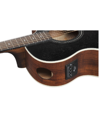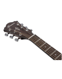 The Ibanez T-bar Undersaddle pickup ensures an accurate translation of the full sound to amplification systems, while the Ibanez AEQ-TP2 preamp, equipped with an onboard tuner and 2-band EQ, provides extra punch and tonal control conveniently located on the upper bout. The Laurel Scalloped bridge enhances vibration efficiency for better resonance and offers flexibility in adjusting the action. Ibanez Advantage bridge pins, known for their ease of use, provide a practical advantage in maintenance, ensuring the pin and string stay securely in place.
