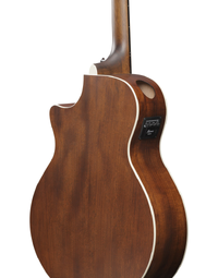 The Comfort Grip Nyatoh neck sets a new standard in playability, providing superior comfort during extended playing sessions. The Laurel fretboard complements this by delivering a rich and warm tone, contributing to the guitar's overall sonic character. Featuring a Solid Okoume top and Okoume back and sides, the guitar offers a full-bodied and warm mid-range with a bright tone. The Okoume back and sides add a touch of warmth when played softly or finger-picked, while providing punchy high-mids with clear projection during strumming.