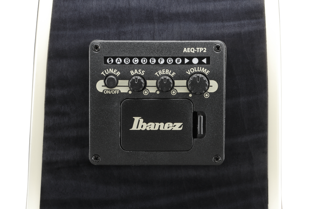 The Ibanez AEQ-TP2 preamp provides the extra punch of on-board EQ along with a convenient and easy-to-read digital tuner and 2-band EQ, located on the instrument’s upper bout.