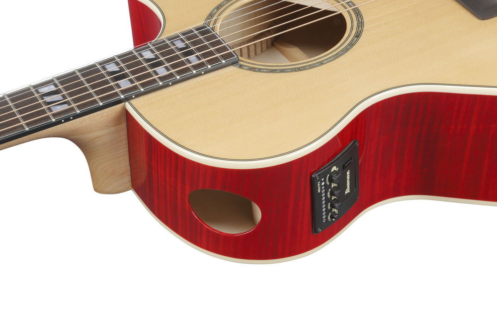 Ibanez AE170N TR AE Series Solid Top Orchestra Acoustic Guitar w/ Pickup Natural / Transparent Red High Gloss