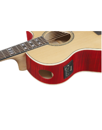 The Ibanez AE170N in Natural/Transparent Red High Gloss is a stunning addition to the AE Series, designed for musicians seeking supreme tone and playability. Its solid Sitka spruce top, paired with flamed maple back and sides, delivers bright, tight tones with shimmering highs, balanced mids, and full-bodied lows. The comfort grip maple neck and thermo-aged ovangkol fretboard ensure superior playability and stability, while the lightweight, scalloped ovangkol bridge enhances resonance. Equipped with an Ibanez T-Bar undersaddle pickup and AEQ-TP2 preamp with onboard tuner, this guitar offers exceptional amplified sound with versatile EQ control. The innovative A.I.R.port design and X-M bracing provide enhanced sound projection and clarity, making it ideal for stage or studio performance. At Riffs & Licks Music, we think the AE170N combines traditional craftsmanship with modern innovation, delivering unmatched tone and comfort for discerning players.