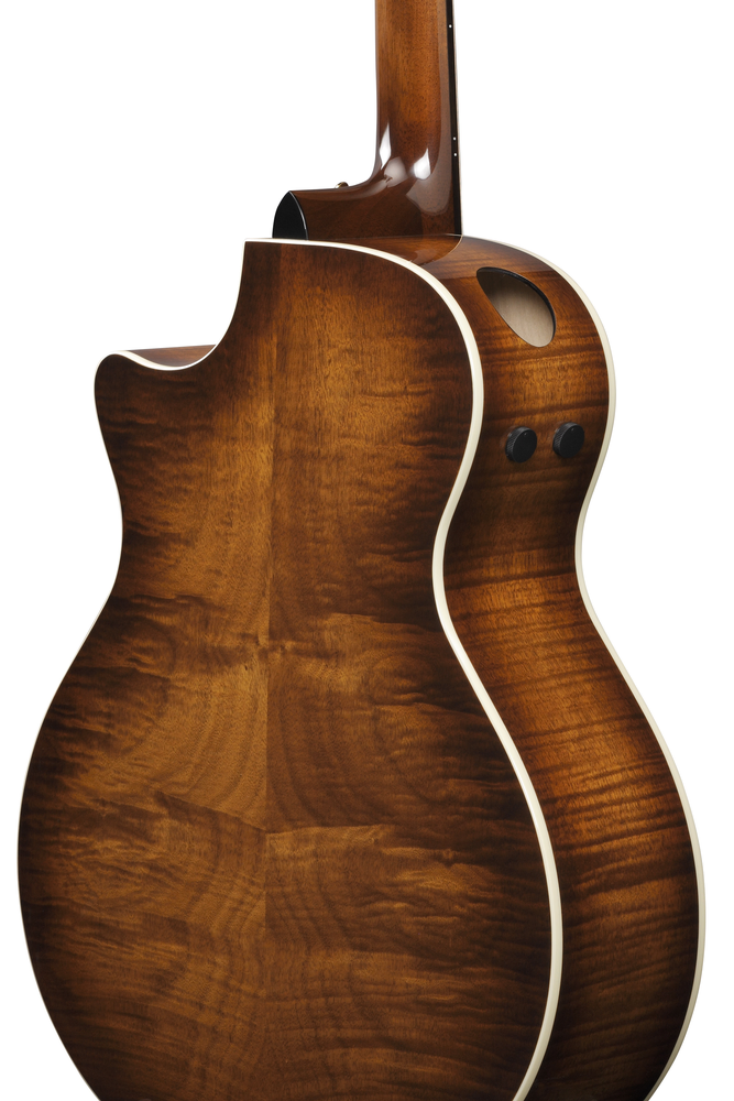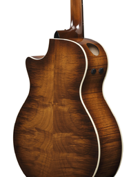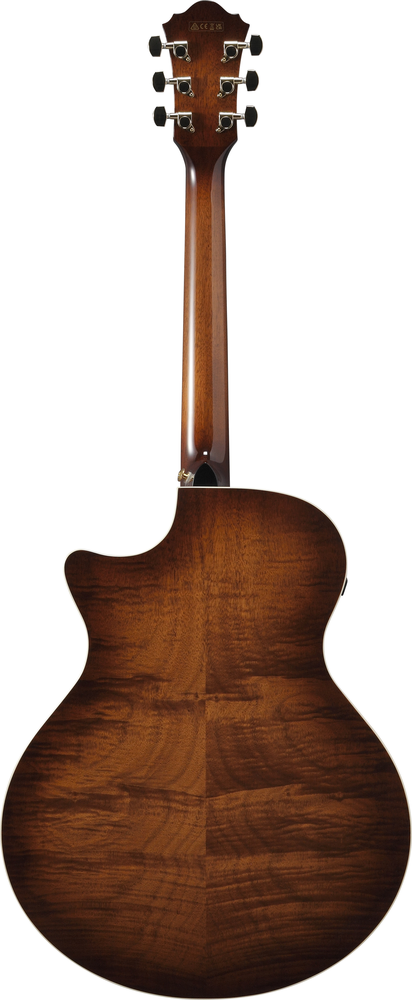 The Comfort Grip Nyatoh neck with Rounded Fretboard Edge is designed for superior playability, ensuring a comfortable and enjoyable playing experience. The Rosewood fretboard adds to the overall balance of the guitar's tone, providing a focused mid-range that enhances the instrument's sonic profile. With Jumbo frets contributing to smooth playability, especially for single-note playing, the guitar offers versatility for different playing styles. The Solid Flamed Okoume top delivers a full-bodied and warm mid-range, complemented by the attractive Flamed Okoume back and sides that contribute punchy and rich mid-range tones.