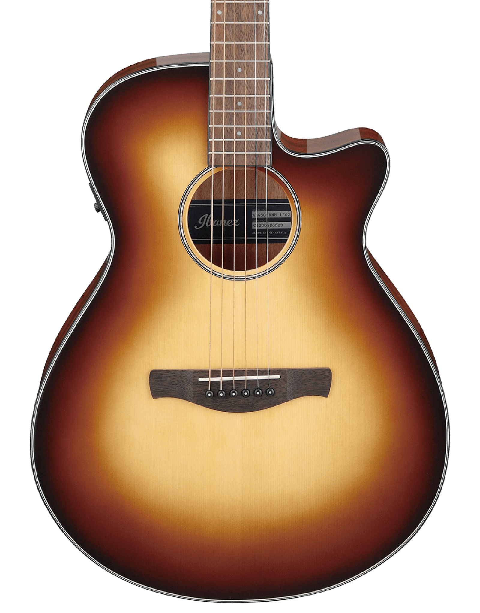 The nyatoh neck offers a smooth, familiar feel with a supportive mid-low response, paired with a laurel fretboard and bridge for a warm, natural voice. Plugged in, the Ibanez T-bar II undersaddle pickup and AEQ-TTS preamp deliver reliable amplified tone with minimal fuss. The simple volume and shape controls make quick adjustments easy, and the onboard tuner keeps you performance-ready without extra gear.