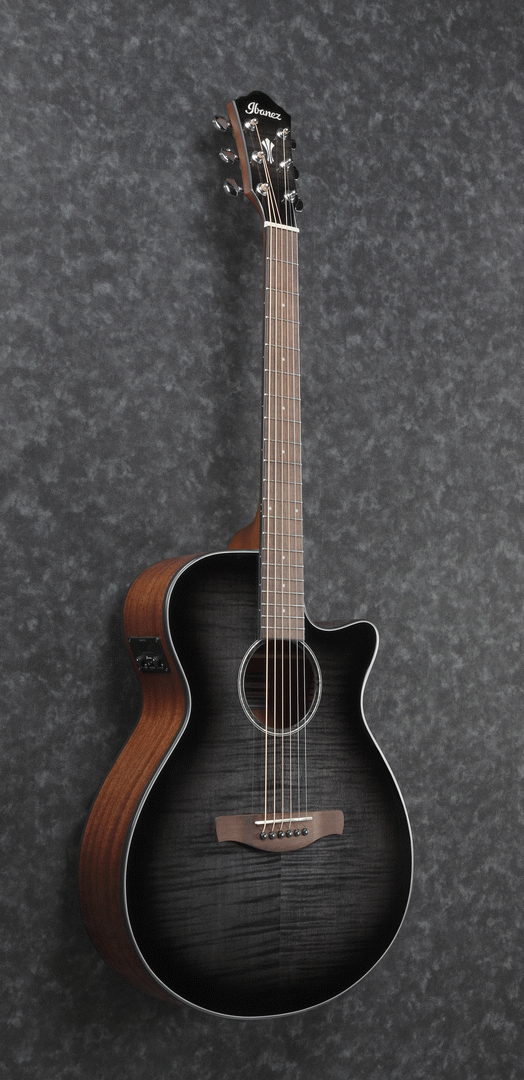 The Ibanez AEG70 TCH Acoustic Electric Guitar is a solid workhorse, disguised as a show horse -  with superior playability and reliability, tone that stands out from the crowd, versatile and intuitive electronics and a High Gloss Transparent Charcoal Burst finish that's sure to turn heads. The thin, single cutaway design of the AEG body shape makes this guitar light and comfortable to play, both sitting and standing, while maintaining the balance and powerful projection of larger-bodied designs. A 3-piece Maple/Nyatoh neck, with a Walnut fretboard is easy to fingerpick and strum, and comfortable to play for hours on end.