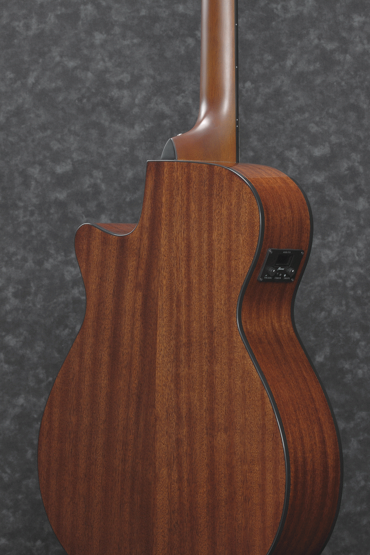 A Flamed Maple top, besides being incredibly visually appealing, brightens the ARG70's tone, and adds a crisp and clear high end, while Sapele back and sides create a warm, woody mid range, and a complex and resonant low end. An Ibanez T-Saddle under-saddle pickup, with onboard preamp and tuner, gives the AEG70 a broad spectrum of piezo-style tones when plugged in through an amp or P.A. By tweaking the preamp, you can move from the natural acoustic tone of the AEG70, to anywhere from fat, punchy tones with powerful projection, to crisp, bright tones with superior clarity.