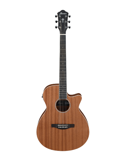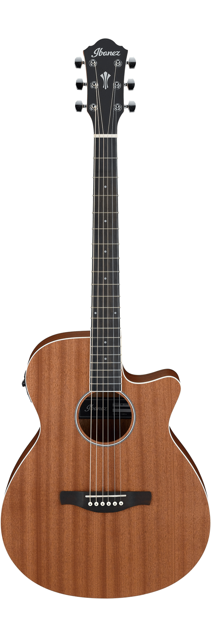 The AEG Series' slender, single-cutaway bodies deliver powerful and balanced acoustic sound, unplugged or through an amp or PA system. With its easy playability, the AEG can be a workhorse acoustic guitar that will rise to any occasion. The AEG7MH boasts a Sapele top and a Sapele back & sides body in Open Pore Natural finish. The Okoume neck, in satin finish with a Purpleheart fretboard, provides greater playing comfort.