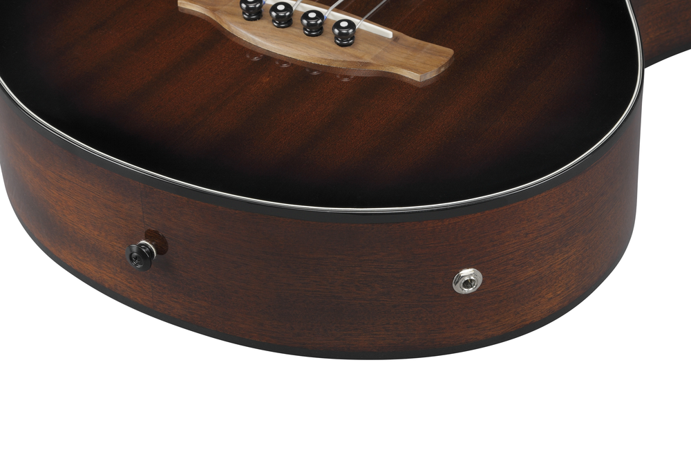 Featuring a 3pc Nyatoh/Maple neck, the bass provides a rich mid-low end and impressive resonance. The Walnut fretboard offers a well-balanced tonal character, while the Sapele top and back/sides contribute to a warm, full-bodied tone. Equipped with an Ibanez Undersaddle pickup and AEQ-2T preamp with onboard tuner, this bass accurately reproduces its true acoustic tone and allows for convenient tuning on the fly.