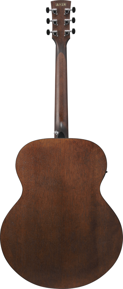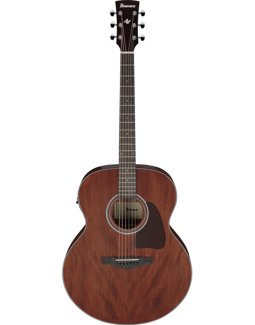 The Ibanez AJ54E Artwood Jumbo Acoustic Guitar in Open Pore Natural combines traditional craftsmanship with modern innovation for a rich and dynamic tonal experience. Featuring a solid okoume top and okoume back and sides, this jumbo guitar produces a warm, full-bodied midrange with bright tones. The nyatoh neck and laurel fretboard ensure smooth playability and a warm tonal character, while the laurel bridge enhances string vibration for natural resonance. Equipped with an Ibanez T-Bar undersaddle pickup and AEQ-TP2 preamp with onboard tuner, it delivers precise, amplified sound with intuitive tone control. The Ibanez Advantage bridge pins add ease of use and reliability, making this guitar perfect for stage or studio. At Riffs & Licks Music, we think the AJ54E blends rich tradition with modern versatility, delivering a superior jumbo acoustic for all styles of play.Specifications