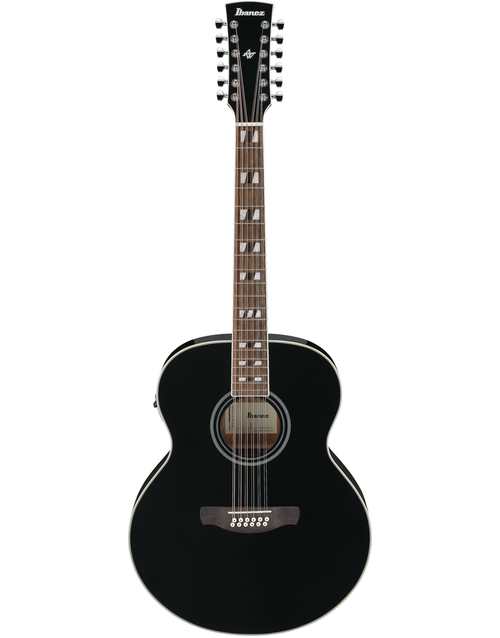 Ibanez AJ7012M1E BK Artwood 12-String Solid Top Jumbo Acoustic Guitar w/ Pickup Black High Gloss