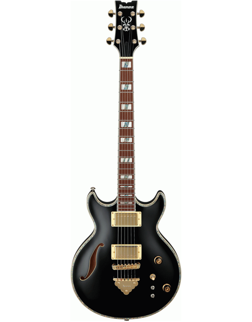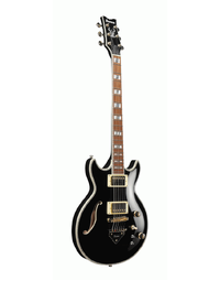 The Ibanez AR520H BK Electric Guitar, finished in Black, is the next step in the legacy of the AR, one of Ibanez' first, and most sought after, original designs. A Maple top and Maple/Okoume body gives the AR520H a naturally resonant tone, with a bright, crispy attack on the high end, and rich mids and low end. This tonewood combination makes the AR520H super responsive to your playing style, which helps a pair of legendary Super 58 pickups really shine. These moderate output humbuckers have a vintage tone that's extremely versatile and adaptable to almost any genre of music. Clean them up for classic jazz and blues riffs, or dial in some dirt and shred some rock licks. The AR520H also features tri-sound switching, with one switch for each Super 58. Tri-sound switching gives you three different tonal characteristics for each Super 58 pickup; with a flick of a switch, you can change from parallel, to split coil, to in series, for a truly versatile arsenal of tones.