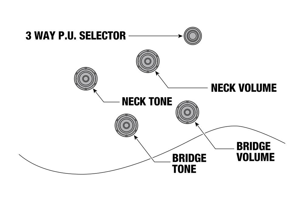 | Controls | 2 Volume, 2 Tone, 3-way toggle switch |