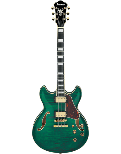 Ibanez AS93FM TMG Artcore Expressionist Thinline Hollow Body Flame Electric Guitar Transparent Moss Green