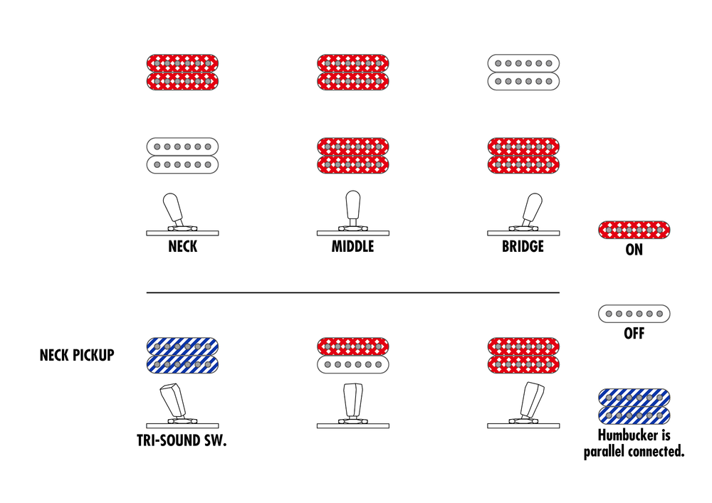 The Tri-sound switch gives a humbucker pickup three different sounds, expanding the versatility of your guitar.