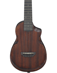 Experience the extraordinary with the Ibanez AUC14 OVL Solid Back & Sides Concert Ukulele in an enchanting Open Pore Violin Sunburst finish. The AU series introduces a unique construction method where the body starts as a solid block of wood, and is carved out, creating a single piece for the back and sides. With a Sapele top and solid Paulownia back/sides, this ukulele delivers a warm, full tone, superior note definition, and added brightness. The Purpleheart fretboard and double hole bridge contribute to the instrument's beauty and rich tonal character while offering easy string changes and enhanced tuning stability.