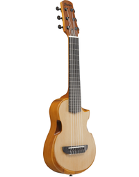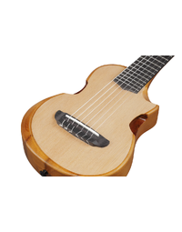 Unleash the rich tones and unique playability of the Ibanez AUP10N OPN Solid Back & Sides Tenor Guitalele in an exquisite Open Pore Natural finish. The AU series presents a distinctive construction method, starting with a solid block of wood that is routed out to form a single piece for the back and sides. The addition of a spruce top completes the body, giving this guitalele a one-of-a-kind sound and exceptional playability. The light-weight Paulownia back and sides contribute to a well-balanced tone with superior note definition and added brightness.