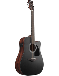 Ibanez AW247CE WKH Artwood Solid Top Dreadnought Acoustic Guitar w/Pickup Weathered Black/Natural Open Pore