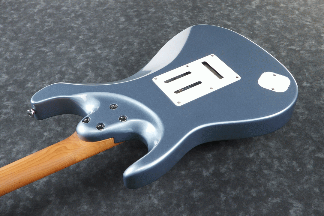 The Ibanez AZ2204 ICM Prestige Electric Guitar, finished in Ice Blue Metallic, takes adaptability to new extremes, excelling at everything from the cleanest of jazz licks, to heavy rock riffs. The AZ line embodies time-tested Ibanez innovation and player-focused features like a smooth, oval neck grip, a well-balanced asymmetrical body shape with ergonomic rear body contour, and a neck heel that allows for unrivaled playability. The AZ2204's Roasted Maple neck and fretboard feature Ibanez's S-TECH special roasted treatment, which increases the wood's stability, durability, water resistance and tolerance of temperature changes. The neck is sealed with an oil finish which helps make it feel similar to a well-played guitar neck. Stainless steel frets with Prestige fret edge treatment are extremely resistant to corrosion and wear and allow for effortlessly speedy riffs. An oil-impregnated bone nut enhances tuning stability, and promotes rich, warm resonance.
