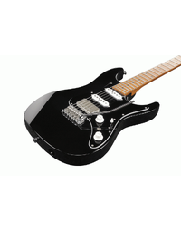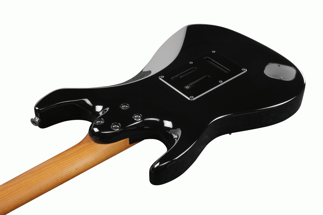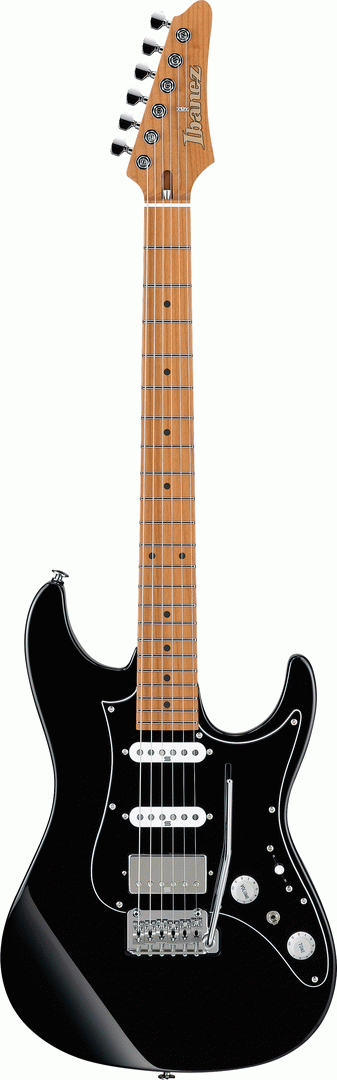 The Ibanez AZ2204B BK Prestige Electric Guitar, finished in Black, takes adaptability to new extremes, excelling at everything from the cleanest of jazz licks, to heavy rock riffs. The AZ line embodies time-tested Ibanez innovation and player-focused features like a smooth, oval neck grip, a well-balanced asymmetrical body shape with ergonomic rear body contour, and a neck heel that allows for unrivaled playability. The AZ2204B's Roasted Maple neck and fretboard feature Ibanez's S-TECH special roasted treatment, which increases the wood's stability, durability, water resistance and tolerance of temperature changes. The neck is sealed with an oil finish which helps make it feel similar to a well-played guitar neck. Stainless steel frets with Prestige fret edge treatment are extremely resistant to corrosion and wear and allow for effortlessly speedy riffs. An oil-impregnated bone nut enhances tuning stability, and promotes rich, warm resonance.