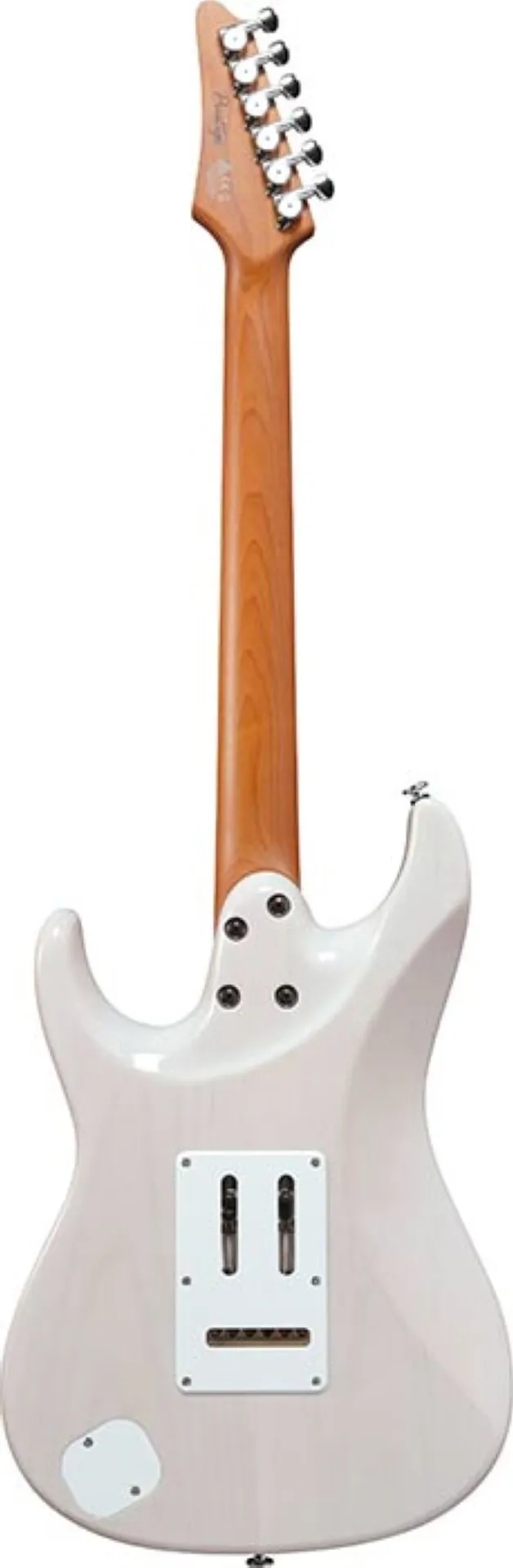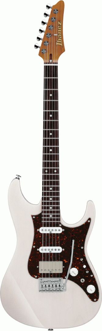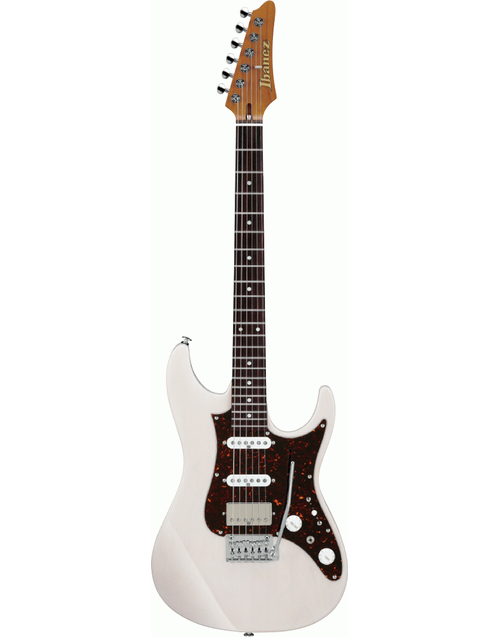 The Ibanez AZ2204N AWD Prestige Electric Guitar, finished in Antique White Blonde, takes adaptability to new extremes, excelling at everything from the cleanest of jazz licks, to heavy rock riffs. The AZ line embodies time-tested Ibanez innovation and player-focused features like a smooth, oval neck grip, a well-balanced asymmetrical body shape with ergonomic rear body contour, and a neck heel that allows for unrivaled playability. The AZ2204N's Roasted Maple neck and 9"-12" Compound Radius Rosewood fretboard feature Ibanez's S-TECH special roasted treatment, which increases the wood's stability, durability, water resistance and tolerance of temperature changes. The neck is sealed with an oil finish which helps make it feel similar to a well-played guitar neck. Stainless steel frets with Prestige fret edge treatment are extremely resistant to corrosion and wear and allow for effortlessly speedy riffs. An oil-impregnated bone nut enhances tuning stability, and promotes rich, warm resonance.