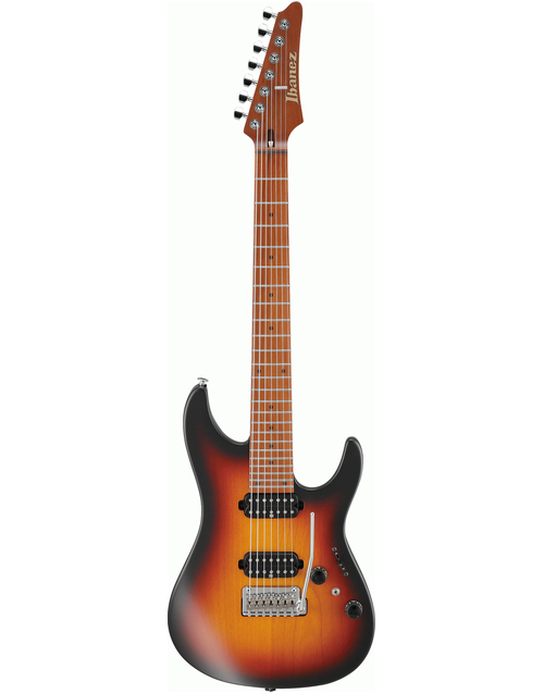 The Ibanez AZ24027 TFF 7-String Prestige Electric Guitar, finished in Tri-Fade Burst Flat, takes adaptability to new extremes, excelling at everything from the warmest blues licks, to the most intense, shred-heavy metal riffs. The AZ line embodies time-tested Ibanez innovation and player-focused features like a smooth, oval neck grip, a well-balanced asymmetrical body shape with ergonomic rear body contour, and a neck heel that allows for unrivalled playability. The AZ24027's neck and fretboard feature Ibanez's S-TECH special roasted treatment, which increases the wood's stability, durability, water resistance and tolerance of temperature changes. The neck is sealed with an oil finish which helps make it feel similar to a well-played guitar neck.
