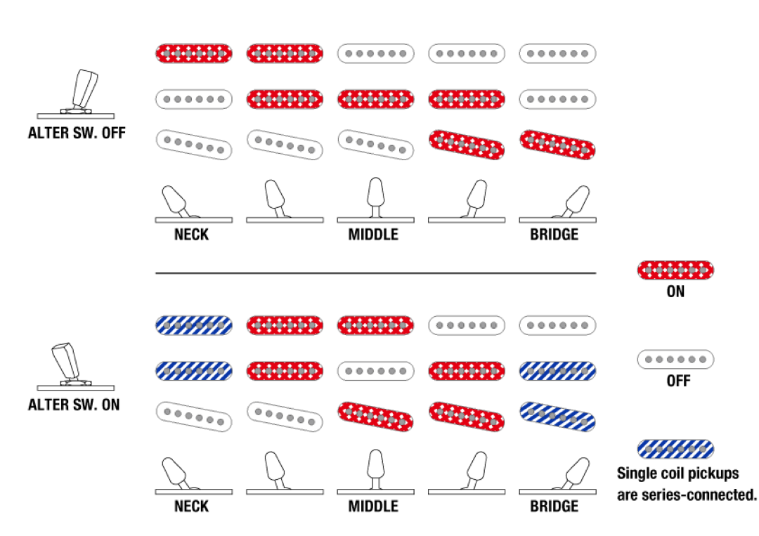 | Controls | dyna-MIX9 switching system w/ 1 Volume, 1 Tone, 5-way lever switch, alter switch |