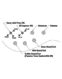 The 3-way Mid frequency switch allows players to choose from 3 Mid Frequency options and provides great tonal variety.