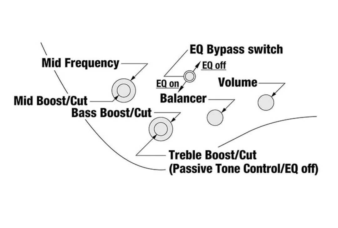 | Controls | 1 Volume, 1 Balancer, Vari-mid 3 Band EQ, EQ Bypass Switch |