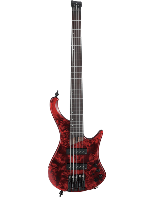 The Ibanez Bass Workshop EHB1505 SWL 5-String Electric Bass is a cutting-edge, headless instrument designed for modern bassists seeking innovation and comfort. Its ergonomic, chambered body, and headless construction provide a lightweight and comfortable playing experience ideal for long sessions or performances. The combination of high-quality tone woods, including a stunning Poplar Burl top and selected light-weight African Mahogany body, contributes to a warm tone with rich resonance.