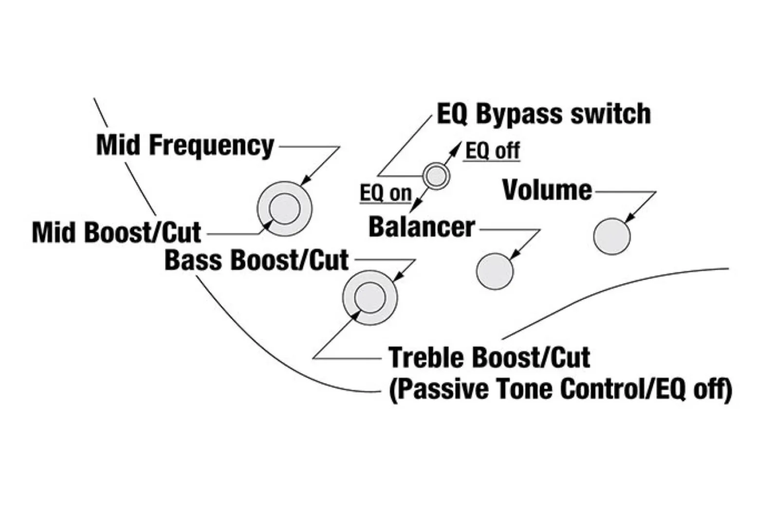 | Electronics | Vari-mid 3-band EQ w/ EQ bypass switch (passive tone control on treble pot) |