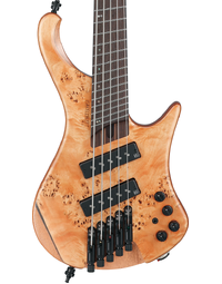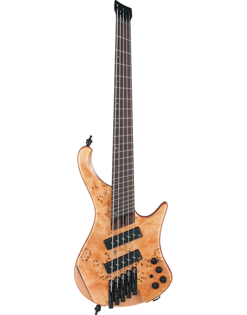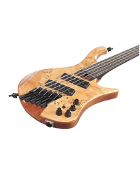 The Ibanez Bass Workshop EHB1505SMS FNL 5-String Multi Scale Poplar Burl Top Headless Electric Bass in Florid Natural Low Gloss, embodies the epitome of modern bass design. With its headless construction, contoured body, and chambered design, this bass offers a lightweight and comfortable playing experience, making it ideal for extended performances or practice sessions. The EHB series combines high-quality tone woods and versatile electronics, delivering a cutting-edge, ultra-modern bass capable of navigating the intricate landscape of tones demanded by today's bassists.