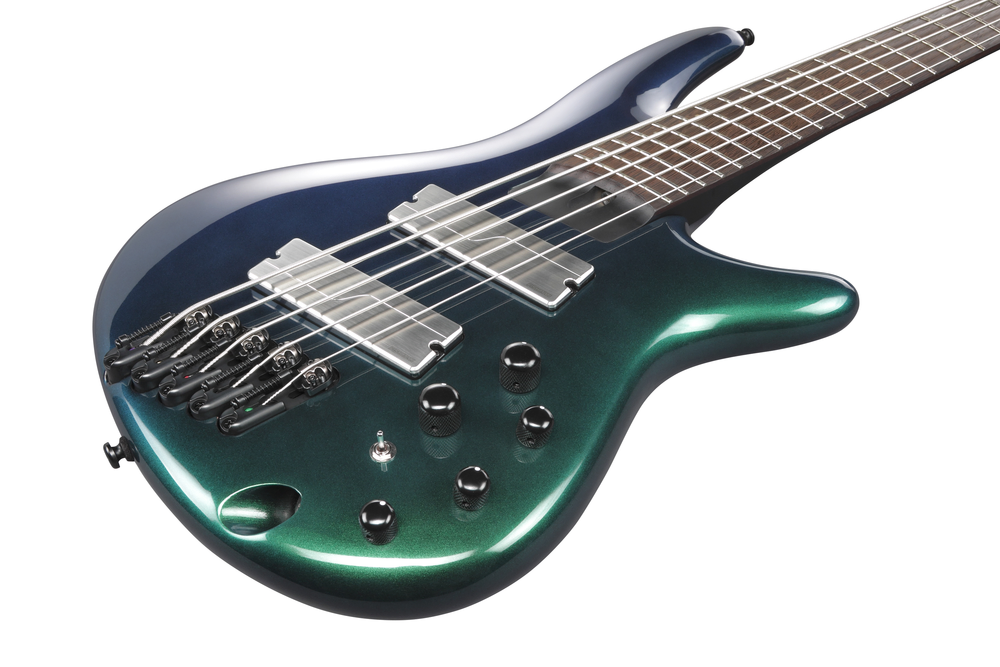 Unleash your musical prowess with the Ibanez Bass Workshop SRMS725 BCM 5-String Multi Scale Electric Bass in an exquisite Blue Chameleon finish, with Fishman Fluence pickups. The multi-scale design may present an initial hurdle to newcomers, but its unique fret-to-bridge distances quickly become a source of comfortable playability, enhancing tonality and delivering a superior bass-playing experience within moments of picking up the instrument.