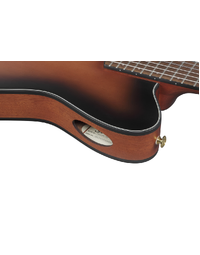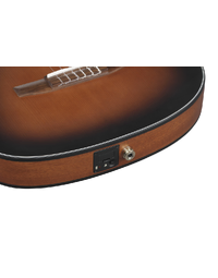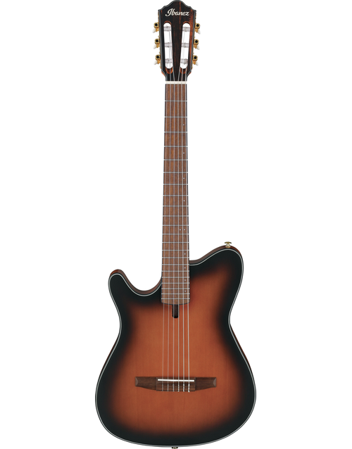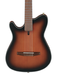 The Ibanez FRH10N is crafted for guitarists seeking the warm tones of nylon strings with the playability of an electric guitar. Its compact, thin body, combined with a narrow 46mm nut width and 400R fretboard radius, ensures comfortable playability. The Nyatoh neck provides rich mids, while the Walnut fretboard delivers a balanced tone. The Solid Sitka Spruce top and Sapele back and sides produce a full-bodied, resonant sound. Featuring an Ibanez T-bar Undersaddle pickup and Custom Electronics, it delivers clear, amplified tones without unwanted feedback. The side sound port allows you to experience the guitar's pure acoustic tone directly.