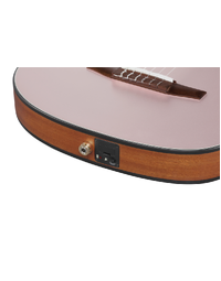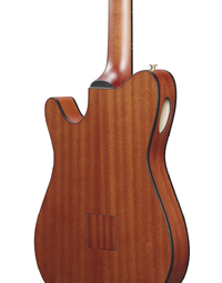 The Ibanez FRH10N is crafted for guitarists seeking the warm tones of nylon strings with the playability of an electric guitar. Its compact, thin body, combined with a narrow 46mm nut width and 400R fretboard radius, ensures comfortable playability. The Nyatoh neck provides rich mids, while the Walnut fretboard delivers a balanced tone. The Solid Sitka Spruce top and Sapele back and sides produce a full-bodied, resonant sound. Featuring an Ibanez T-bar Undersaddle pickup and Custom Electronics, it delivers clear, amplified tones without unwanted feedback. The side sound port allows you to experience the guitar's pure acoustic tone directly.