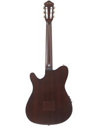 The Ibanez FRH20QMN WRL Nylon String Acoustic Guitar offers a modern take on the nylon-string experience, combining sleek design with practical playability. Its Quilted Maple top paired with Sapele back and sides delivers a warm, articulate tone with natural projection, enhanced by fan bracing for classical-style resonance. A slim Nyatoh neck and Rosewood fretboard ensure comfortable playability, while the 46mm bone nut and 400mm radius strike a balance between classical tradition and electric guitar familiarity. The side sound port allows players to hear their tone directly, while gold classical tuners provide stability. With an Ibanez Undersaddle pickup and AEQ210T preamp featuring an onboard tuner, this guitar is stage-ready. Finished in Wine Red Low Gloss, it blends striking looks with versatile functionality. At Riffs & Licks Music, we think it’s a great choice for players seeking a nylon-string with contemporary style and amplified performance.