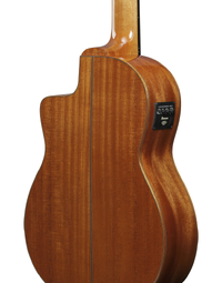 The Ibanez GA3007CE brings extended-range versatility to a traditional nylon-string platform, adding a low B string for greater depth and harmonic flexibility. A solid German spruce top paired with African mahogany back and sides delivers clear articulation, warm mids, and a controlled low end that suits both solo performance and ensemble playing.