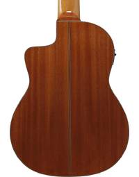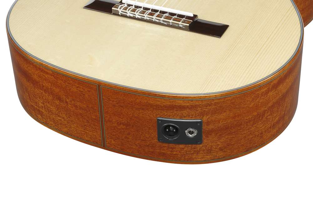 An okoume neck and flat-radius rosewood fingerboard provide a comfortable, familiar classical feel, even with the wider string spacing.