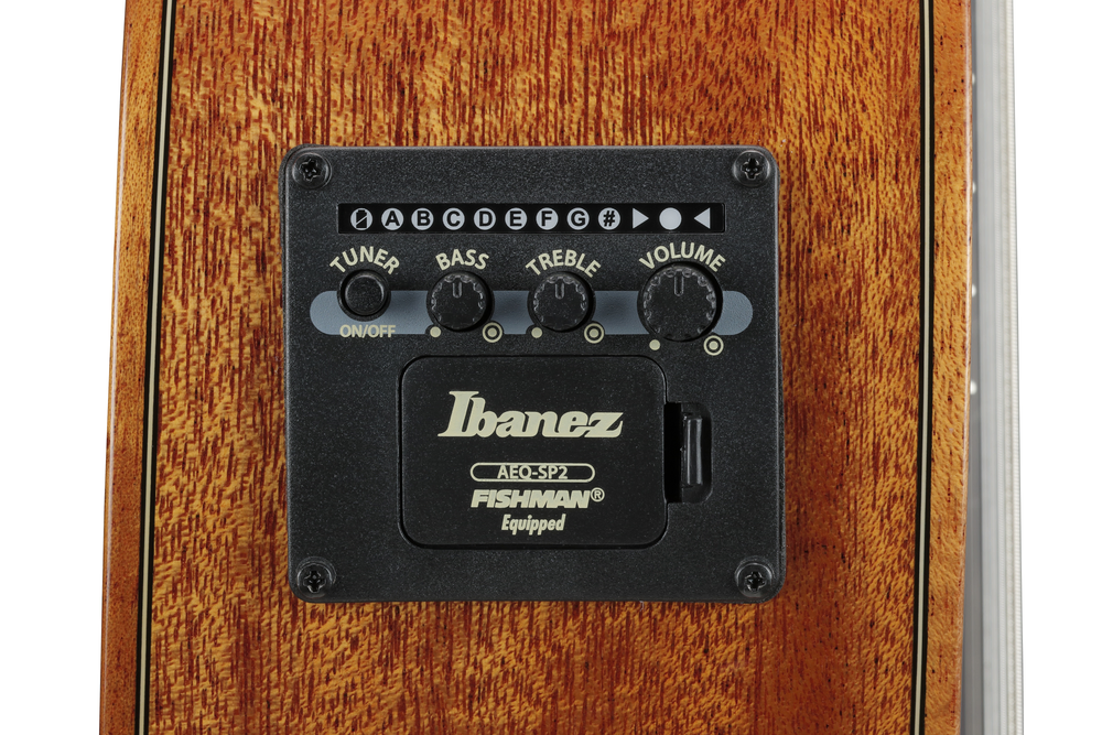 Equipped with a Fishman S-Core pickup and Ibanez AEQ-SP2 preamp with onboard tuner, it’s ready for live performance, whether plugged into a PA, acoustic amp, or recording setup.