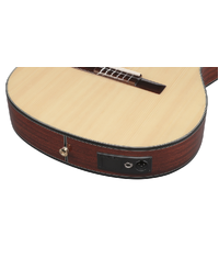 Sapele back and sides offer a full-bodied and warm mid-range and a bright tone.