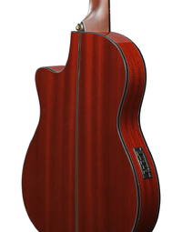 Sapele back and sides offer a full-bodied and warm mid-range and a bright tone.