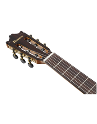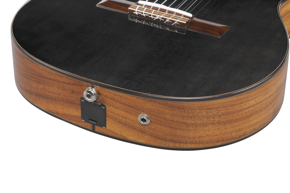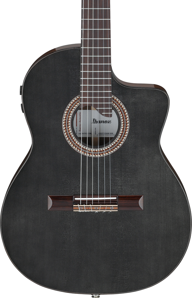 The Ibanez GA360TCE TBK brings a modern edge to the nylon-string format, combining a solid German spruce top with acacia back and sides for a balanced, articulate voice with warm mids and a crisp high-end. The thinline cutaway body keeps things comfortable and reduces feedback on stage, while improving access to higher frets.