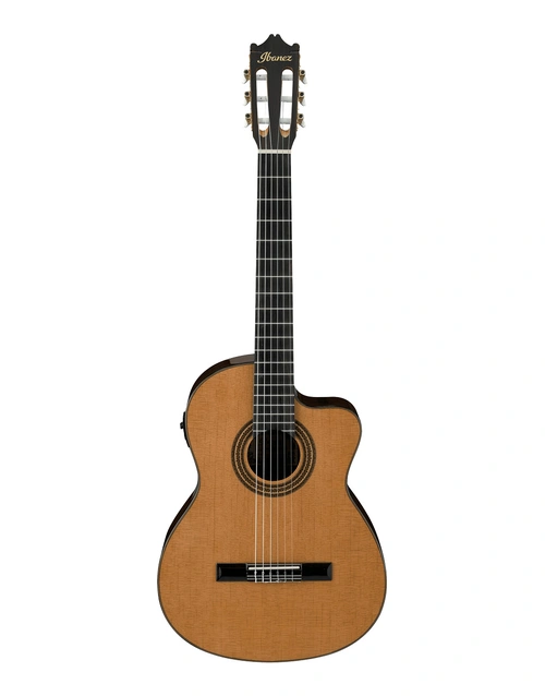 The Ibanez GA6CE, Amber High Gloss offers players a classical playing experience, enhanced with stunning tones and a stage ready performance. Its spruce top and sapele body construction offers a broad dynamic range, with crisp articulation and beautifully bright characteristic to suit a variety of playing styles. Its mahogany neck and New Zealand pine fingerboard provides the GA6CE Acoustic with incredible warmth and resonance, with their smooth design offering excellent comfort across the entire fingerboard. The Ibanez GA6CE Classical Guitar is finished off with an under-saddle pickup and powerful AEQ-21 preamp, capturing its natural tones for the stage and studio.