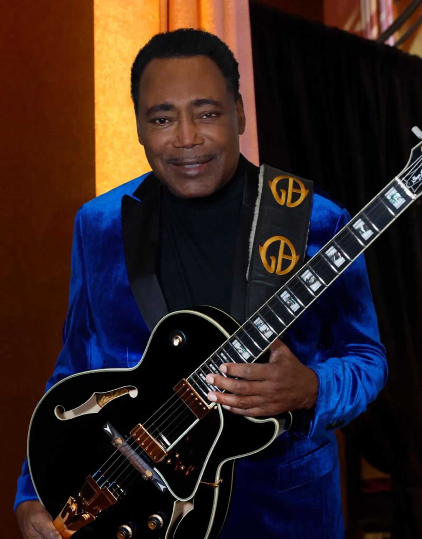 The Ibanez GB10 BK is the long-standing signature hollowbody of jazz legend George Benson, crafted in Japan since 1977. It sports a compact single-cut hollow body with a spruce top and maple back and sides, delivering rich resonance and focused tone. A set-in three-piece maple neck with a bound ebony fingerboard (22 medium frets, acrylic/abalone split block inlays) offers fast, comfortable playability. Floating GB Special humbucker pickups float off the body to reduce feedback and provide smooth, woody jazz tones. Additional refinements include a half-bone/half-brass nut for balanced tone, an ebony bridge, Gotoh tuners, multi-ply binding, gold hardware, and a custom trapeze tailpiece. Controls include individual volume and tone for each pickup, plus a three-way toggle switch. A hard-shell case is included. At Riffs & Licks Music, we think the GB10 is a beautifully refined instrument that delivers sophisticated tone and precision to mount your jazz playing with flair.