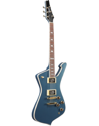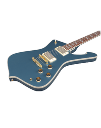 The Ibanez IC420 ABM Iceman Electric Guitar in Antique Blue Metallic pays homage to a timeless classic that has become an integral part of Ibanez's identity – the Iceman. Unveiled in 1977 and officially named in 1978, the Iceman boasts sweeping lines and a dramatic appearance that has left an indelible mark on the world of guitars. Notable models like the IC100, IC300, ICT700, and signature offshoots such as the PS10 and Fireman have solidified the Iceman's iconic status. Its storied history and distinctive design continue to inspire artistic creativity worldwide.