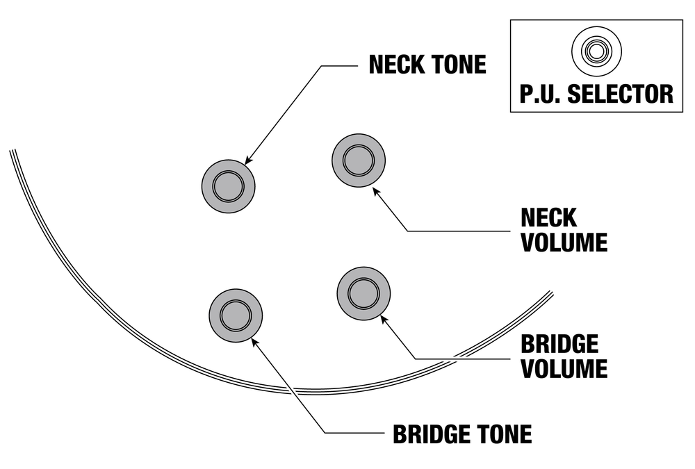 | Controls | 2 Volume, 2 Tone, 3-way toggle switch |