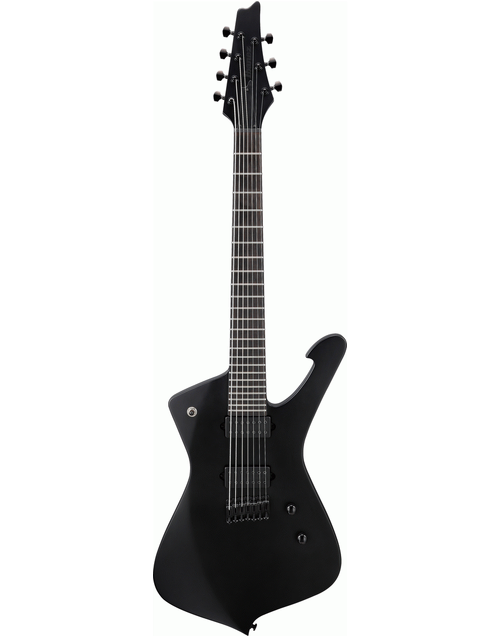 The Ibanez ICTB721 BKF Iron Label Iceman 7 String Electric Guitar, finished in Black Flat, was created with metal, and nothing but metal, in mind. This model is the culmination of years of Ibanez' tweaking and modding their Iron Label series, until they created the heaviest-hitting shred machines that they've ever built. You won't find a single feature on the purposefully spartan Iceman that doesn't contribute directly to producing bone rattling, earth shattering tones that get you hooked, and make you never want to put this guitar down. With blacked out aesthetics, and supercharged electronics, this is one seriously metal axe.